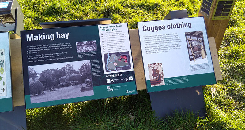 Cogges is managed and staffed by The Cogges Heritage Trust. Displayways produced wayfinding and interactive graphics and signage for visitors. Metalwork was powder coated and concrete fixed into the ground then Tuffcover Embed signage was inset into trays.